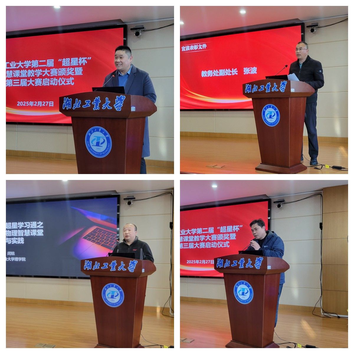 2月27日,湖北工业大学第二届“超星杯”智慧课堂教学大赛颁奖暨第三届大赛启动仪式在我校行政楼一楼会议室举行。教务处处长张道德,副处长张高文、张波,超星集团湖北分公司副总经理赵虎,各学院教学院长,第二届大赛获奖教师,学院教师代表等60余人参加活动。会议由教务处副处长张高文主持。